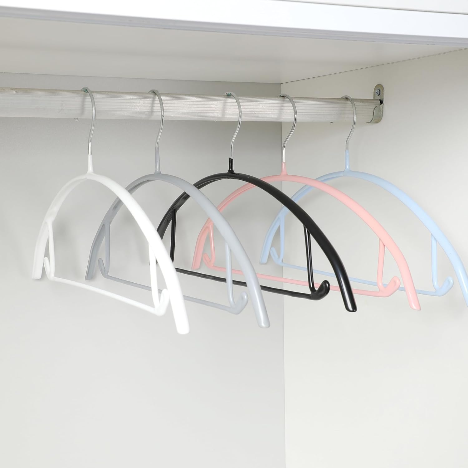 This 10-pack is perfect for anyone who wants to maximize closet space while keeping clothes organized. Use them for suits, coats, shirts, blouses, and dresses. The non-slip surface keeps everything securely in place, while the integrated hooks provide additional storage for accessories. Whether you’re organizing a master closet, a boutique display, or a dorm room wardrobe, these modern hangers deliver style, functionality, and space-saving efficiency.